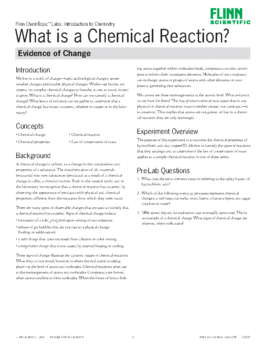 Chemical Reactions Pre Lab Pdf Flinn Scientific Inc Your Safer Source For Science Supplies Po Box 219 0 Batavia Il 60510 800 452 1261 Fax 866 452 1436 Course Hero