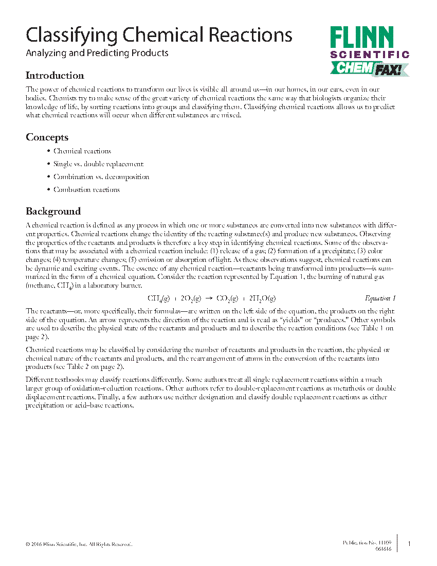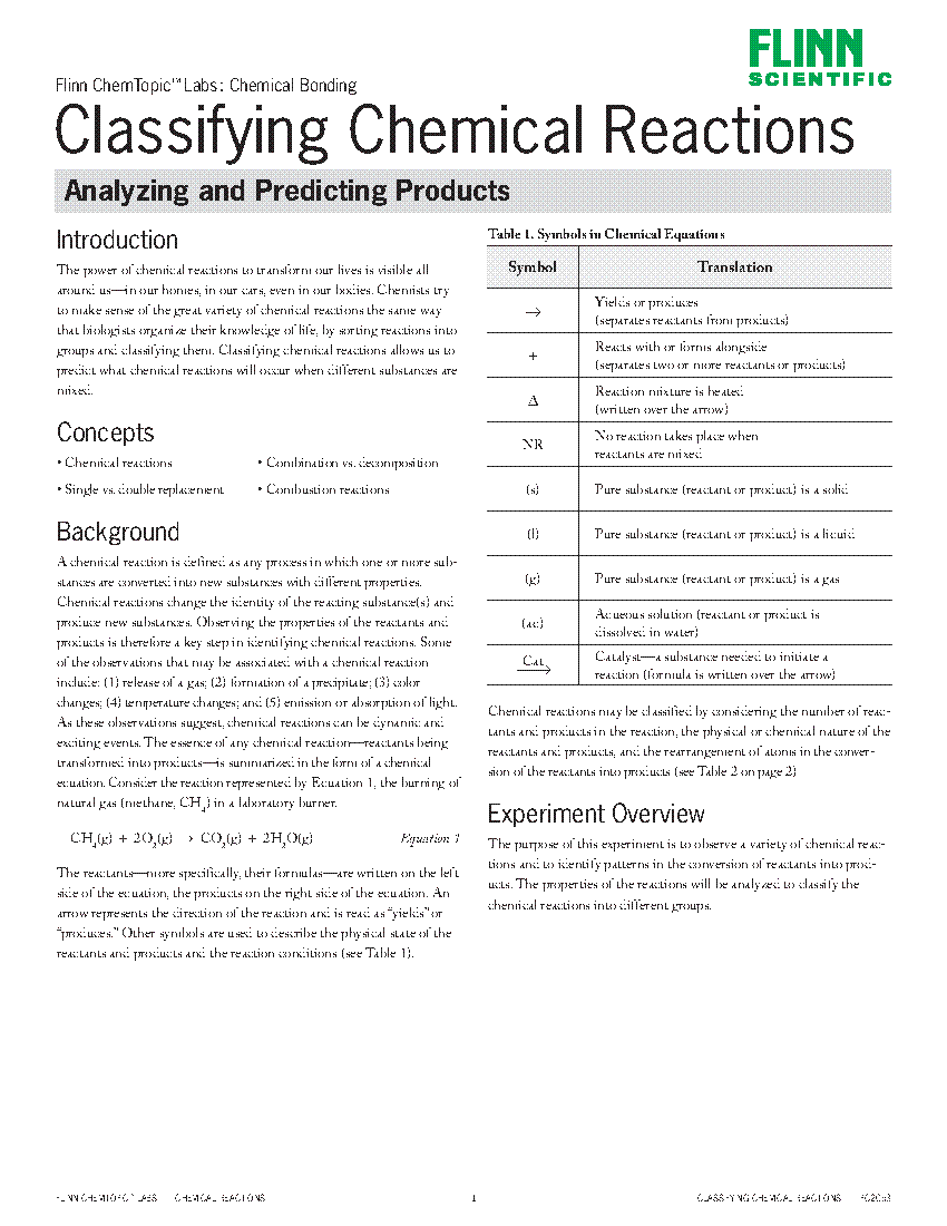 Classifying Chemical Reactions Lab Flinn Page I Classifying Chemical Reactions Classifying Chemical Reactions Analyzing And Predicting Products Course Hero