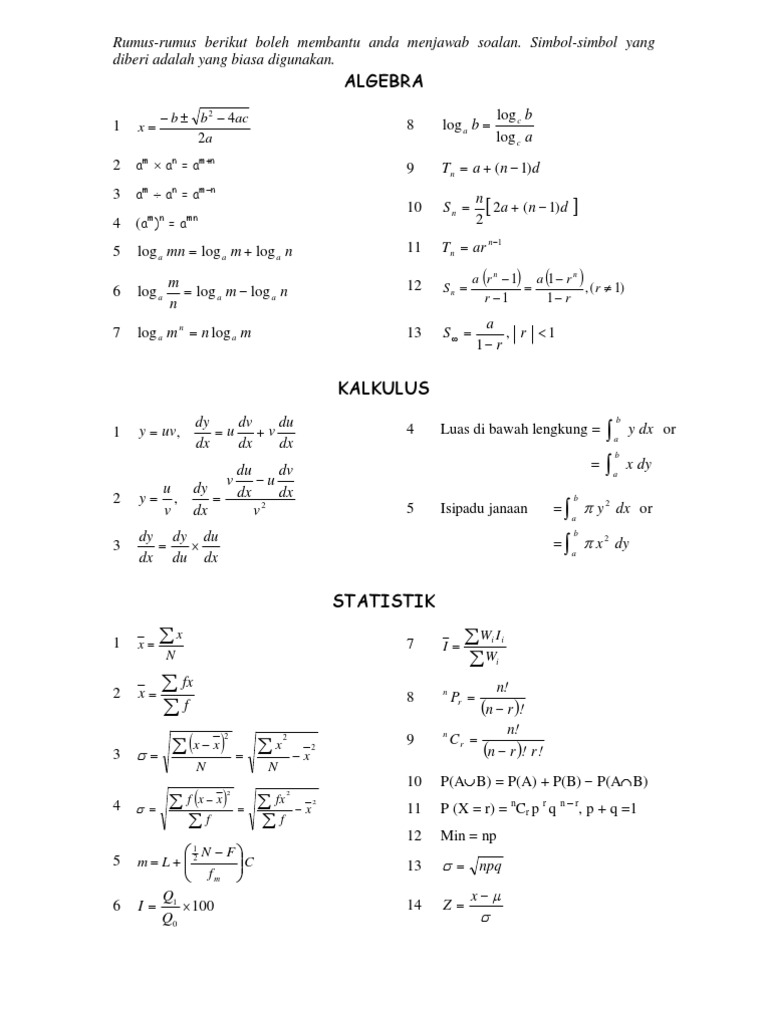 Formula Rumus Matematik Tambahan Tingkatan 4 Dan 5 Sumber Pendidikan