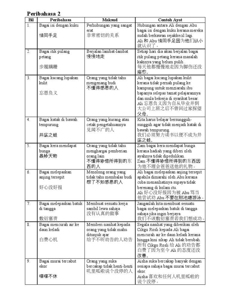 Peribahasa Muka Surat 2 Malay Language Grammar And Vocabulary Teaching Materials