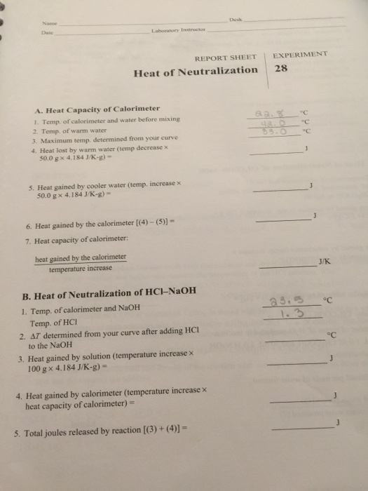 Solved Experiment Report Sheet Heat Of Neutralization A Chegg Com