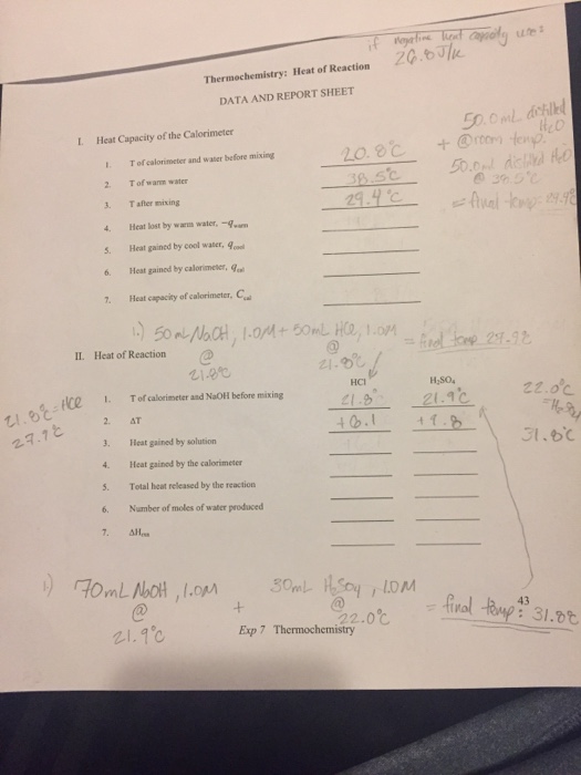 Eriment 13 Report Determining The Heat Of Reaction Chegg Com
