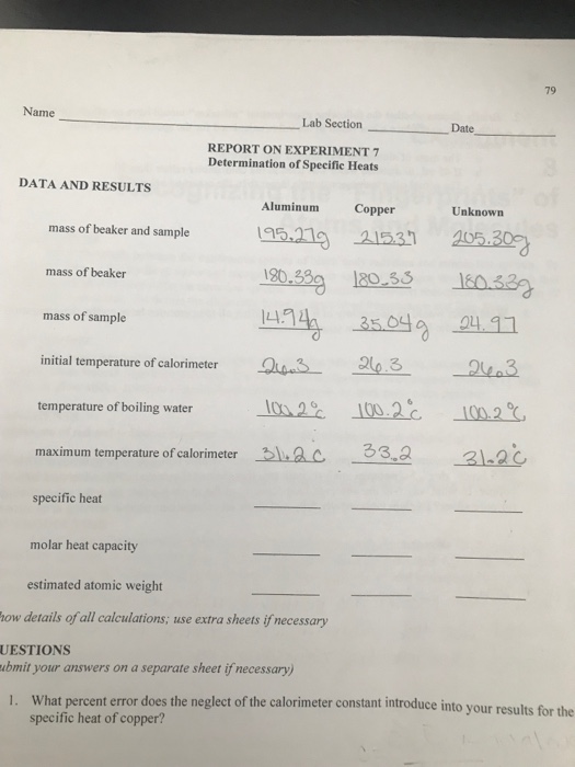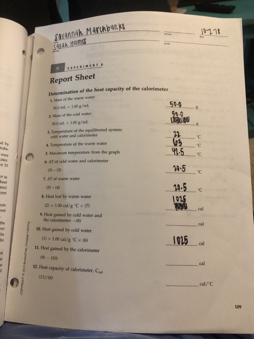 Solved Experiment 25 Report Sheet Calorimetry Lab Sec Nam Chegg Com