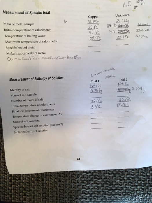 Lab Report Calorimetry Specific Heat Of Calorimete Chegg Com