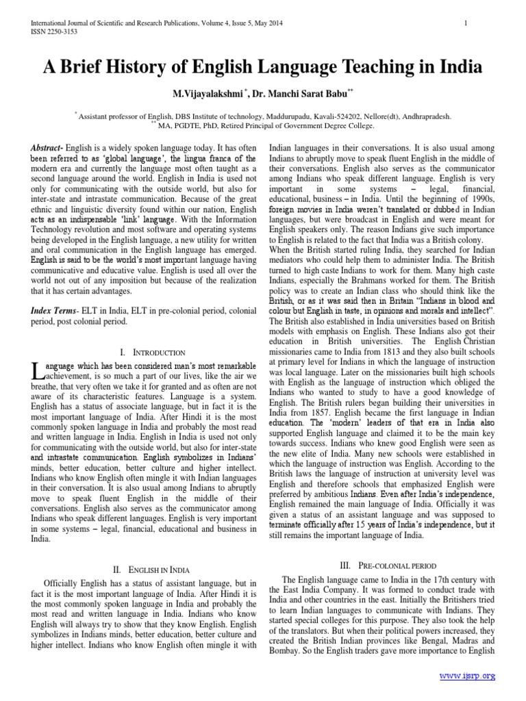 Pdf A Brief History Of English Language Teaching In India Ijsrp Journal Academia Edu