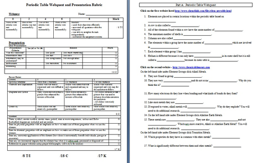 Elements Webquest Periodic Table Chemical Elements