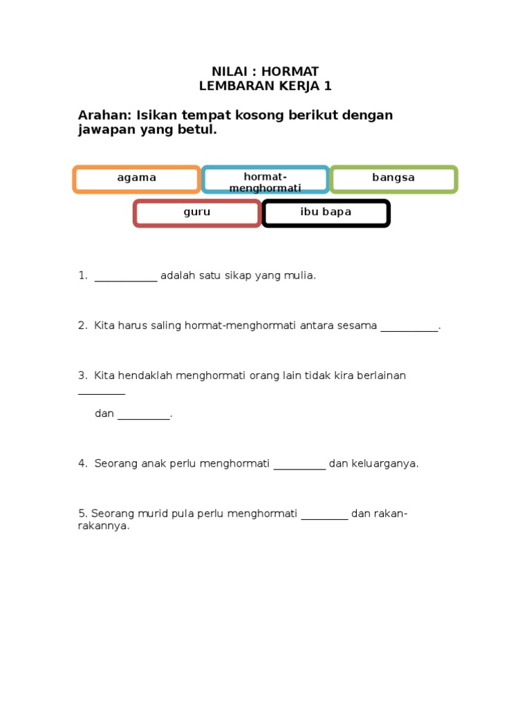 Lembaran Kerja Pend Moral Tahun 4 Hemah Tinggi Docx Document