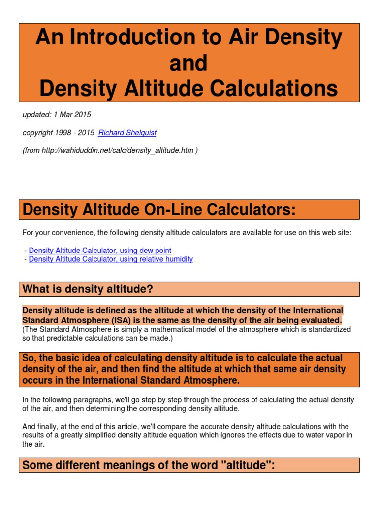 An Introduction To Air Density And Density Altitude Calculations Atmospheric Pressure Atmosphere Of Earth