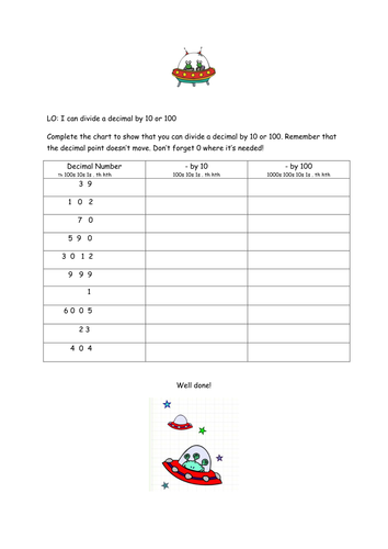 Multiplying And Dividing Decimals By 10 And 100 Teaching Resources