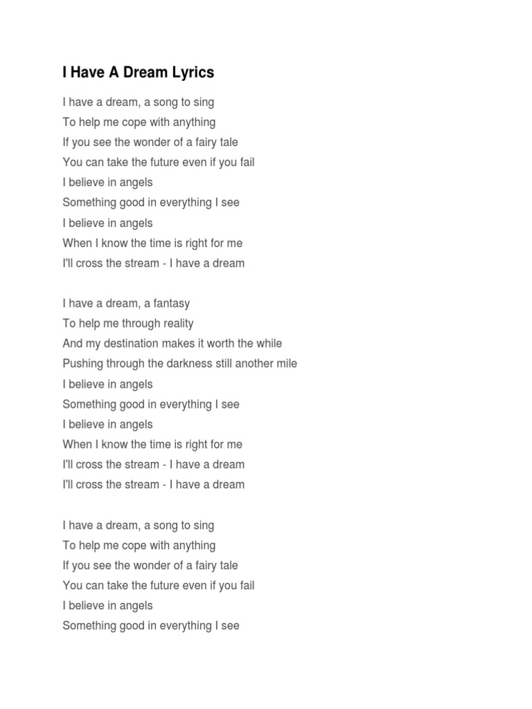 Need I Say More Oh Go In Then I Have A Dream A Song To Sing To Help Me Cope With Anything If You See The Meaningful Lyrics Abba Songs Lyrics