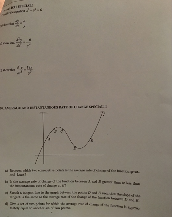 Solved Averagf And Instantaneous Rate Of Change Special Chegg Com