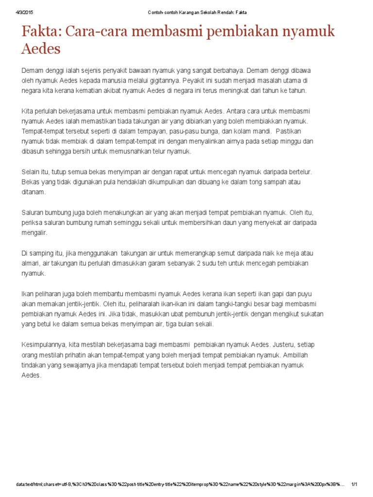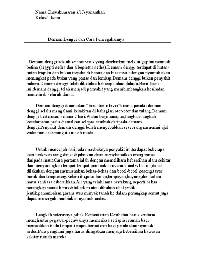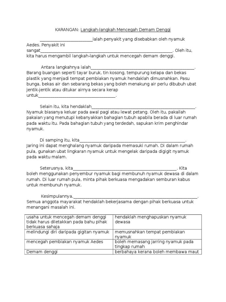 Contoh Contoh Karangan Sekolah Menengah Contoh Karangan Langkah Langkah Untuk Mencegah Deman Denggi