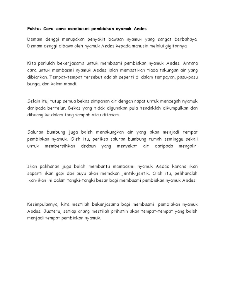 Contoh Contoh Karangan Sekolah Menengah Nyamuk Aedes Dan Huraikan Langkah Langkah Yang Dapat Kita Ambil Untuk Mencegah Demam Denggi