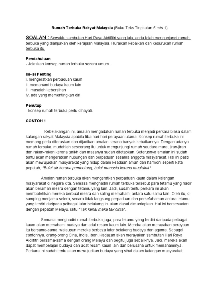 Laman Bahasa Melayu Spm Karangan Kepetingan Rumah Terbuka Di Malaysia