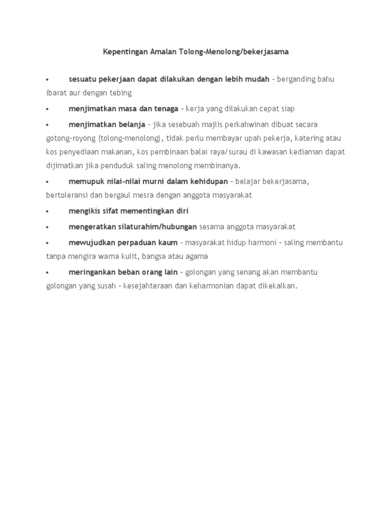 Kepentingan Amalan Kerjasama Dan Gotong Royong Kepentingan Amalan Kerjasama Dan Gotong Royong Konsep Gotong Royong Merupakan Satu Konsep Yang Dianggap Course Hero