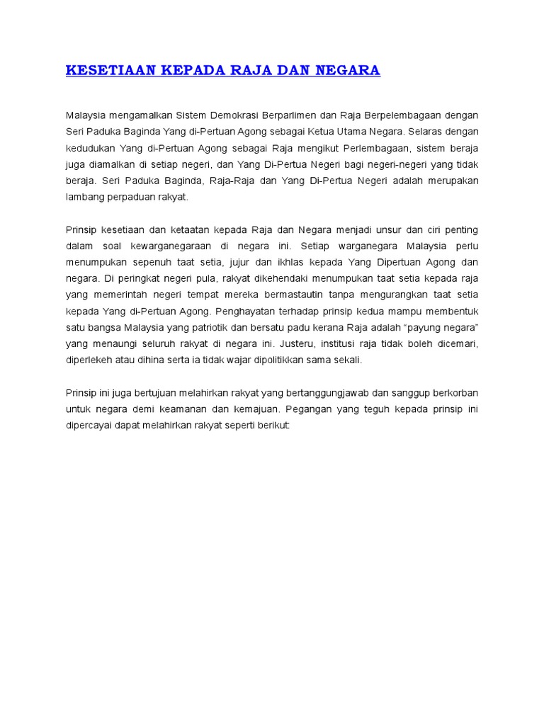 Kepentingan Taat Setia Kepada Raja Dan Negara Tahun 5