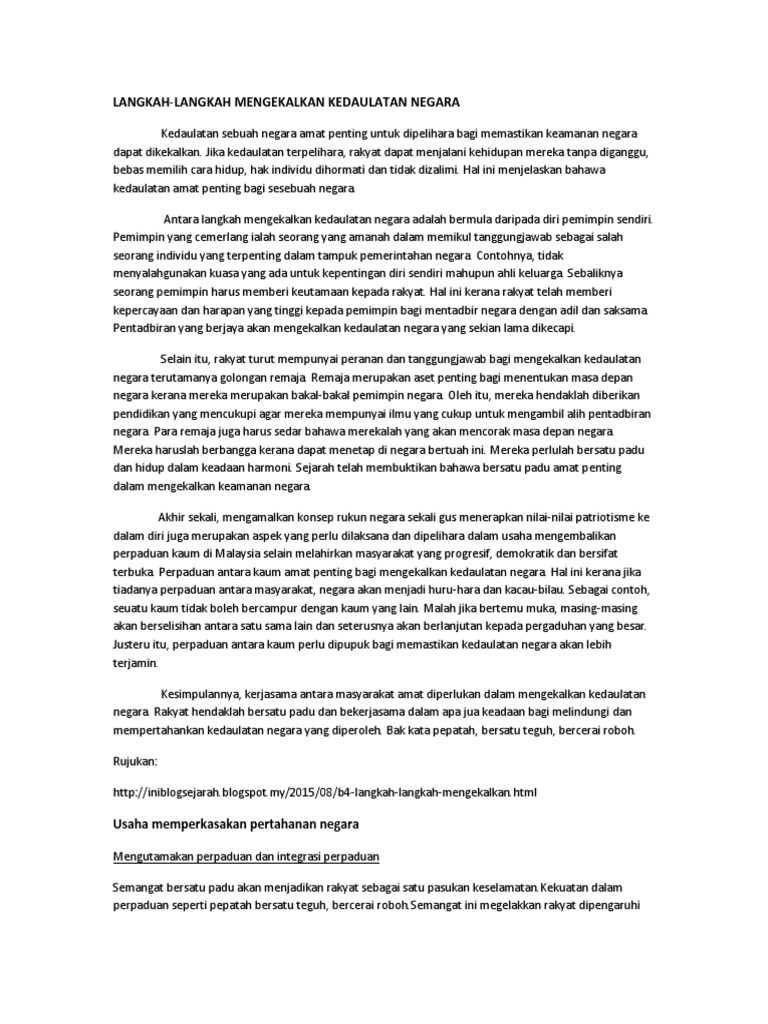 Langkah Langkah Yang Perlu Diambil Untuk Mengekalkan Kedaulatan Negara Sejarah