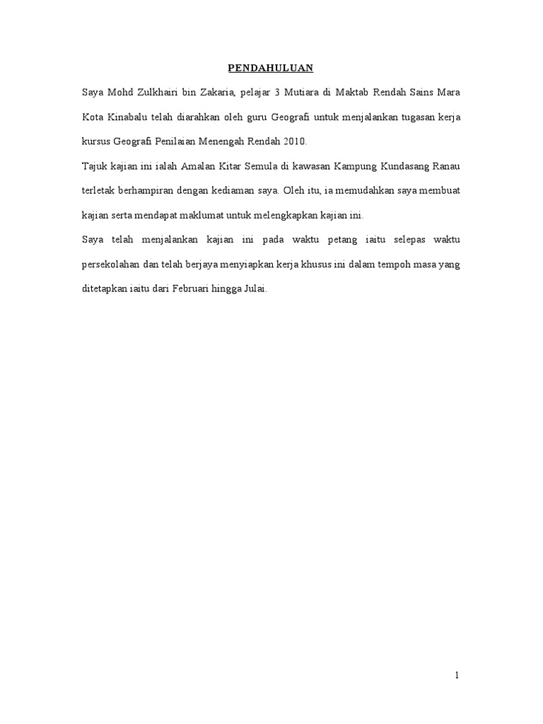 Contoh Pengenalan Kerja Kursus Geografi Stpm