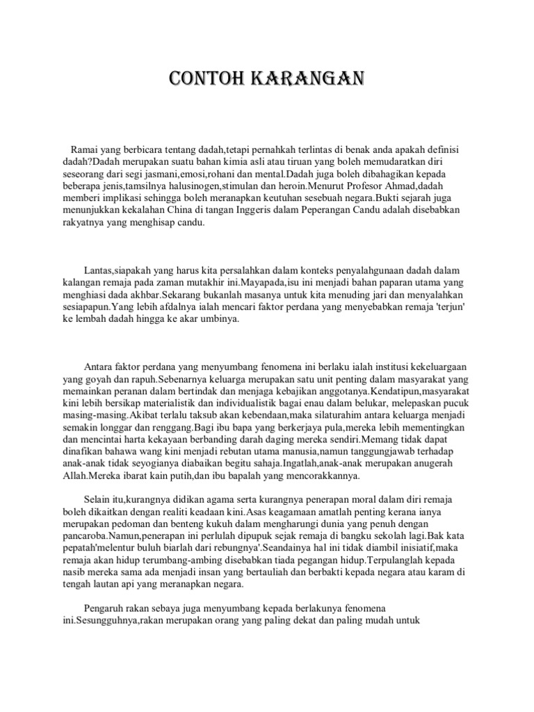 Contoh Karangan Anti Dadah