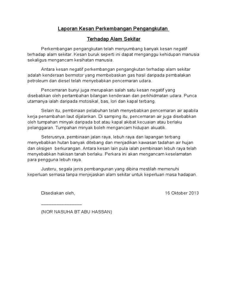Laporan Kesan Perkembangan Pengangkutan