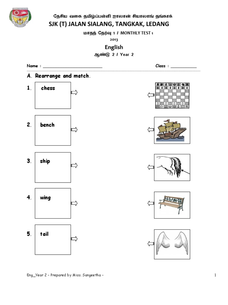 Revision Exercise Year 1 English English Exam Papers English Exam Exam Papers