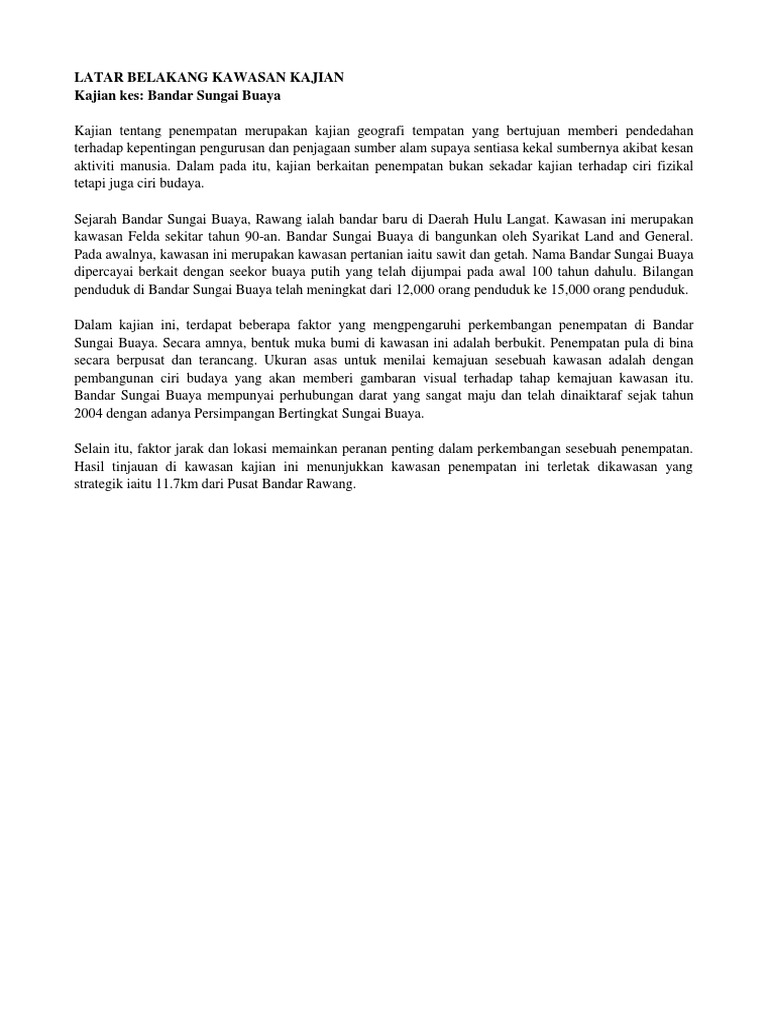Pengenalan Latar Belakang Kawasan Bandar Sungai Buaya Pdf