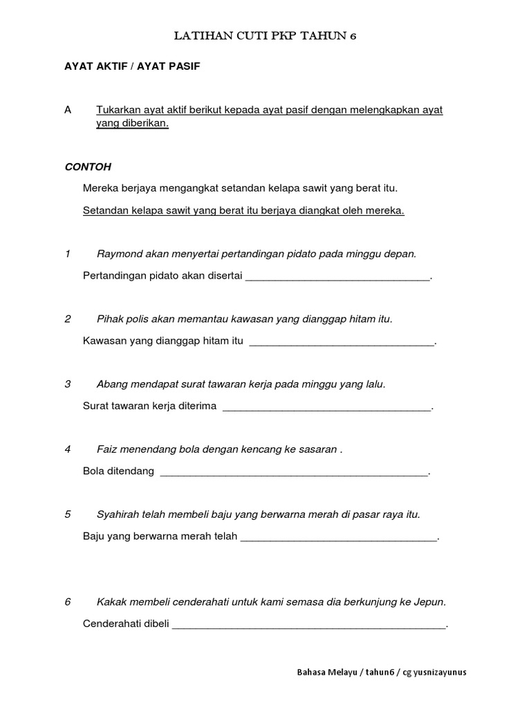 Latihan Cuti Pkp Tahun 6 Ayat Aktif Ayat Pasif