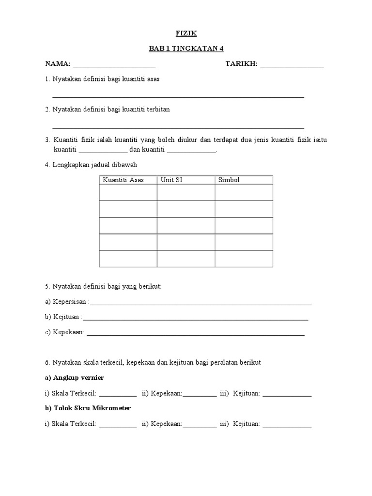 Latihan Fizik Tingkatan 4 Kssm Bab 1