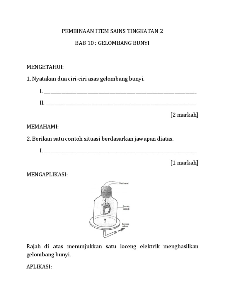 Pembinaan Item Bab 10 Sains Tingkatan 2