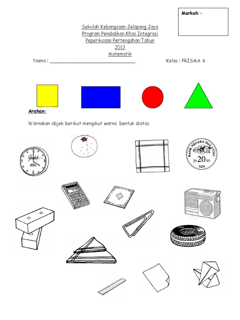 Lembaran Kerja Kemahiran Manipulatif Pendidikan Khas Tahun 3