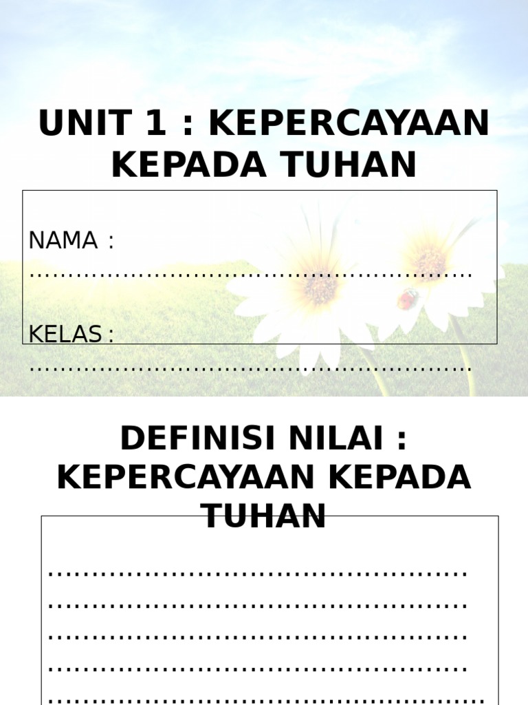 Pendidikan Moral Nilai Kepercayaan Kepada Tuhan Unit 1 Tahun 3 A