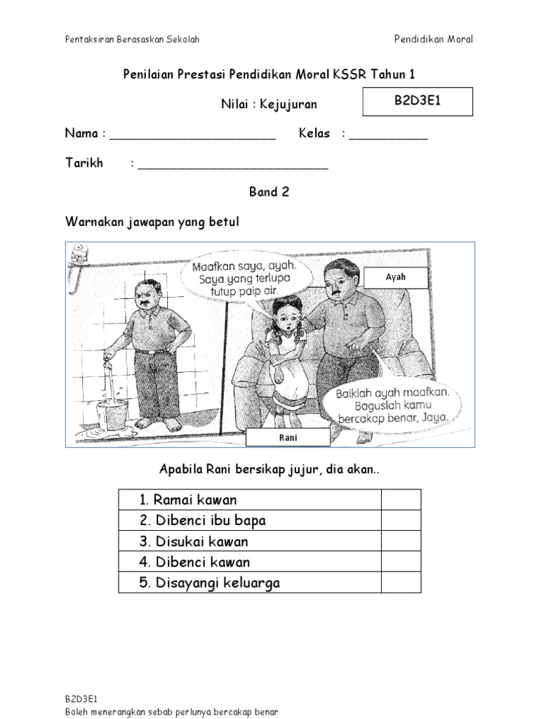 Insrument Pbs Kssr Pendidikan Moral Tahun 1 Kejujuran Band 5