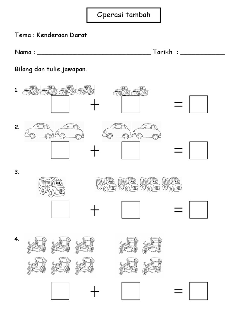 Lembaran Kerja Matematik Asas Tambah Prasekolah Sumber Pendidikan