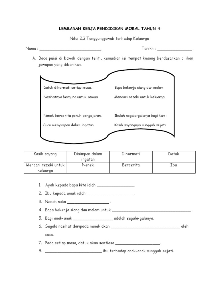 Lembaran Kerja Pendidikan Moral Tahun 4