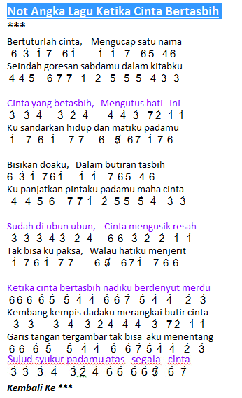Not Angka Lagu Ketika Cinta Bertasbih Dunia Lirik Not Lagu