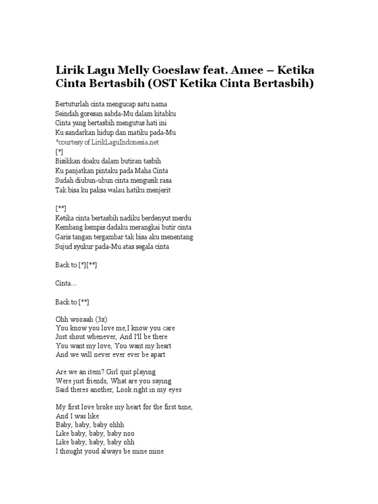Ketika Cinta Bertasbih Lyrics By Melly Goeslaw Ft Amee Bertuturlah Cinta