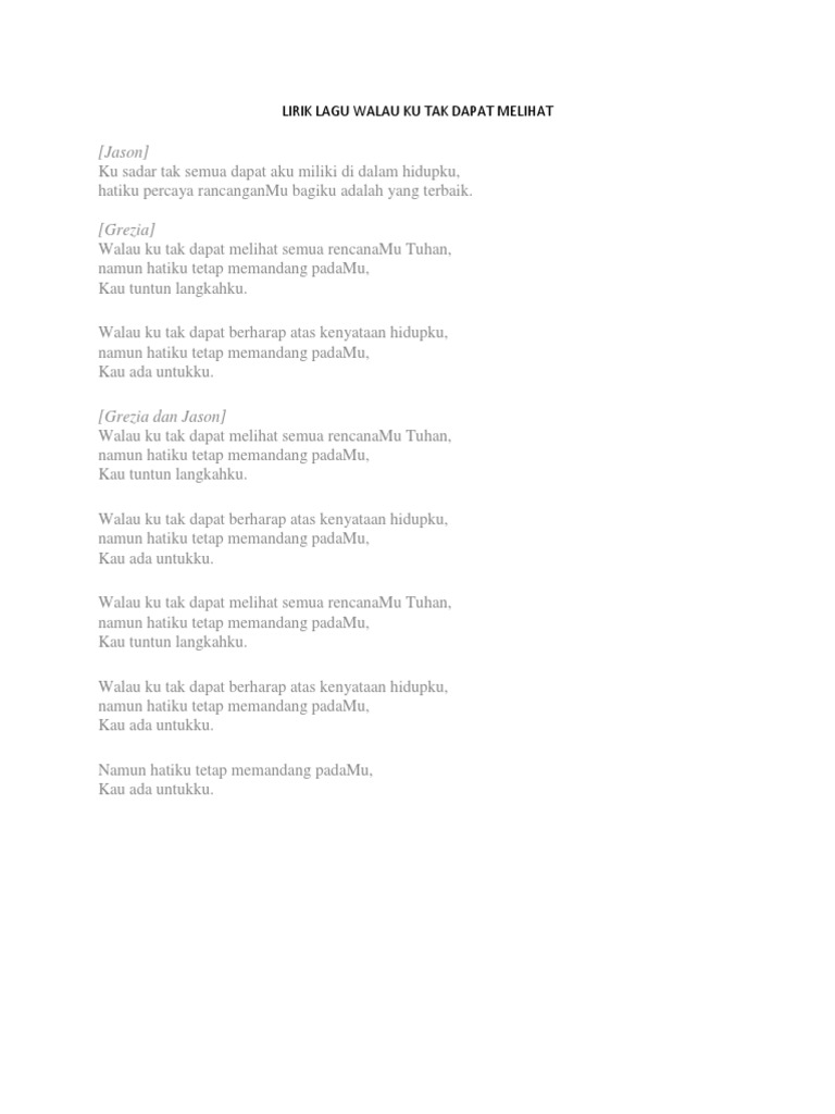 Lirik Lagu Rohani Walau Ku Tak Dapat Melihat By Grezia Epiphania Yukampus