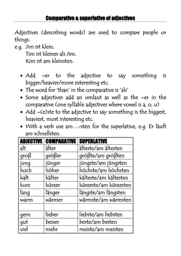 Image Result For German Comparative Superlative List German Grammar Adjectives Superlatives