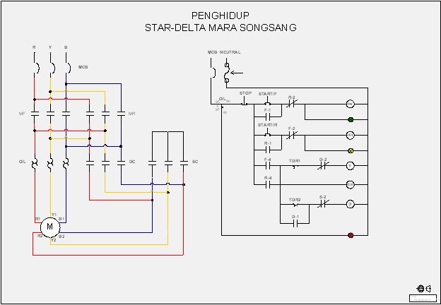 Litar Kawalan Motor Star Delta Forward Reverse