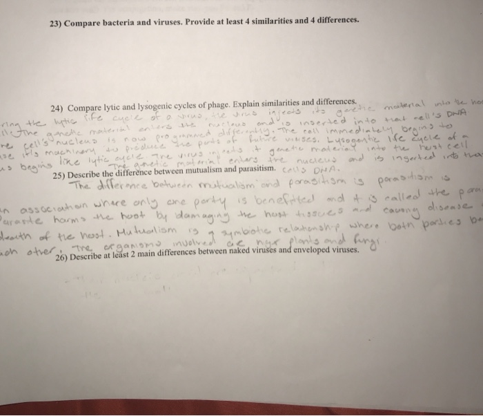 Solved 23 Compare Bacteria And Viruses Provide At Least Chegg Com