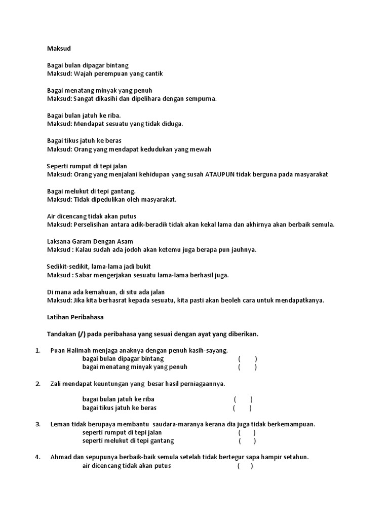 Maksud Dan Latihan Peribahasa