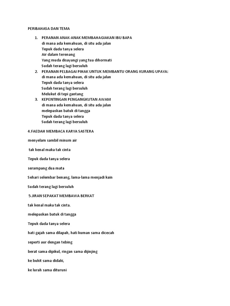 Senarai Peribahasa Dalam Buku Teks Tingkatan 4