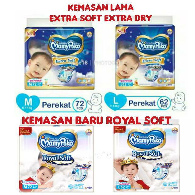 Mamypoko Mamy Poko Extra Soft Extra Dry Royal Soft Tape M72 L62 M 72 L 62 M Adhesive Shopee Singapore