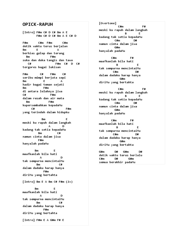 Chord Kunci Gitar Lirik Rapuh Opick Meski Ku Rapuh Dalam Langkah Tribunstyle Com