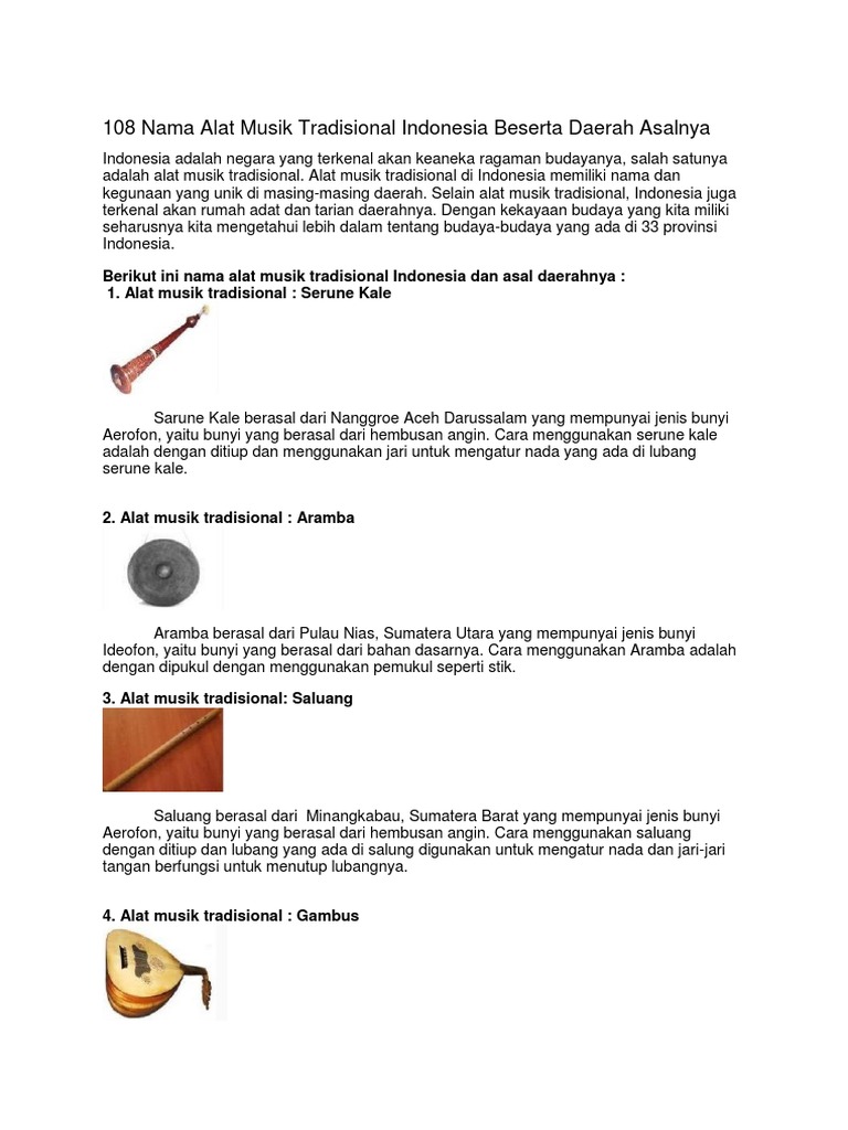 50 Nama Alat Musik Tradisional Indonesia Beserta Daerah Asalnya Lengkap Tutorialbahasainggris Co Id