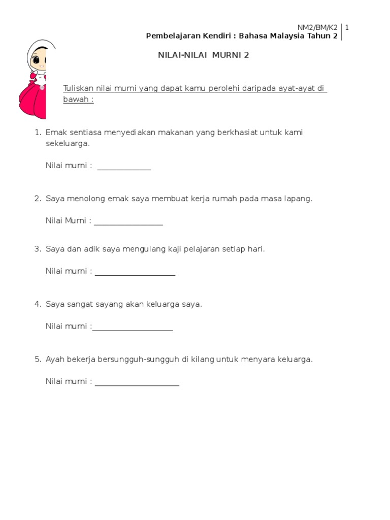 Nilai Murni Tahun 3 Kssr Google Search Malay Language Nilai School Worksheets