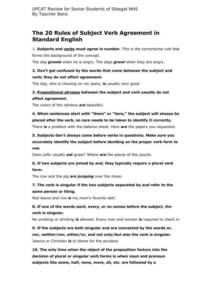 The 20 Rules Of Subject Verb Agreement In Standard English Grammatical Number Plural