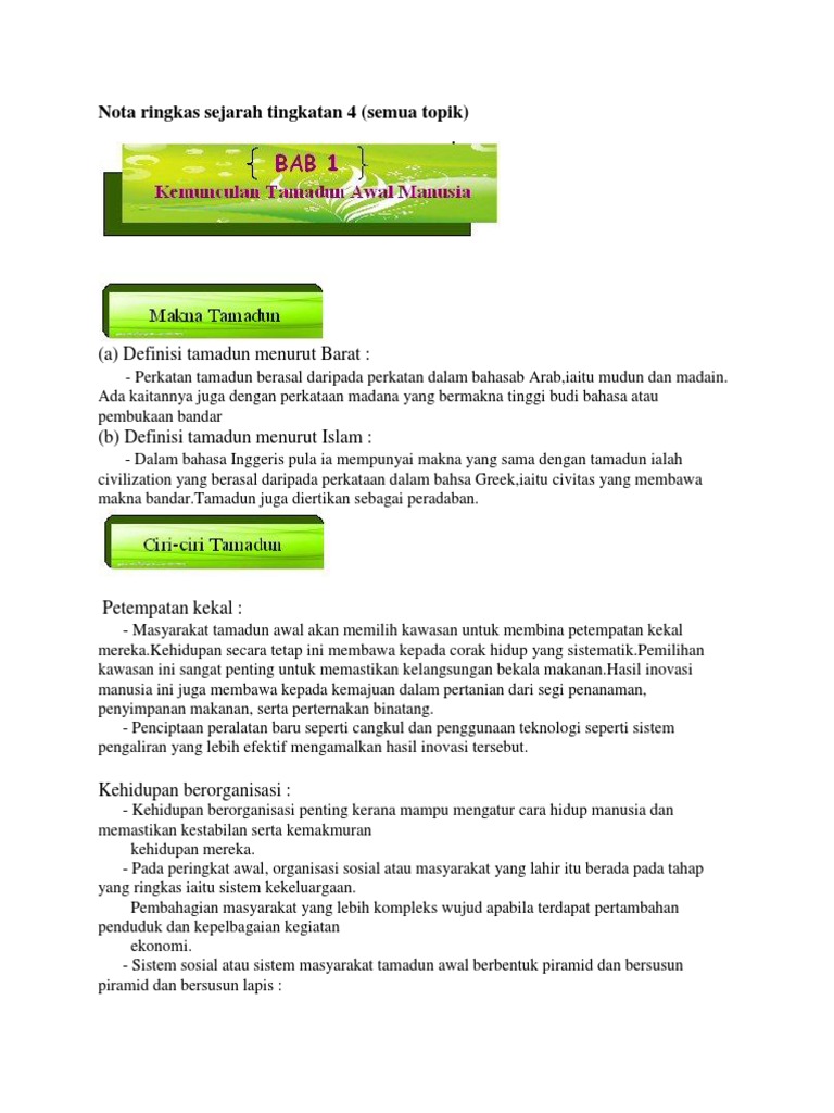 Nota Sejarah Tingkatan 4 Bab 1 Kemunculan Tamadun Awal Manusia Pendidikanmalaysia Com