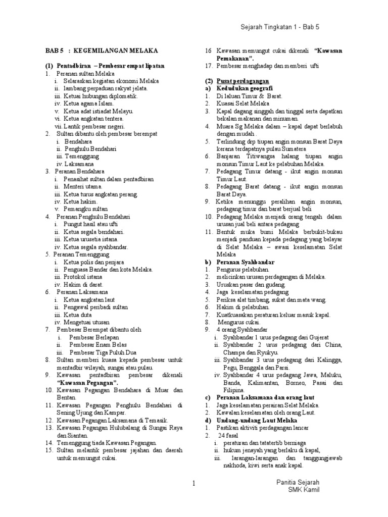 Sejarah Tingkatan 1 Bab 5 Kegemilangan Melaka