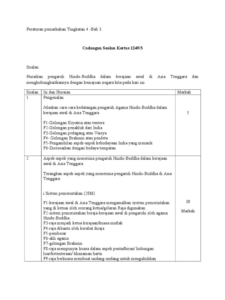 Nota Sejarah Tingkatan 4 Bab 3 Pengaruh Hindu Buddha